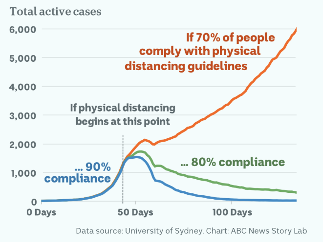 It's a curious position, considering the University of Sydney's latest modelling predicts that more extreme social distancing results in faster eradication of COVID-19: